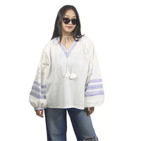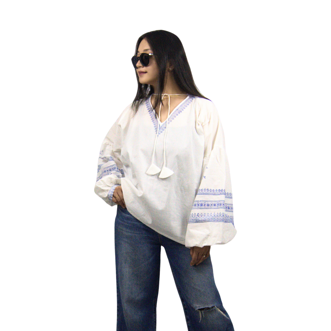 White Boho-Inspired Block Print Blouse – A Timeless Ethnic Charm(Oversized)