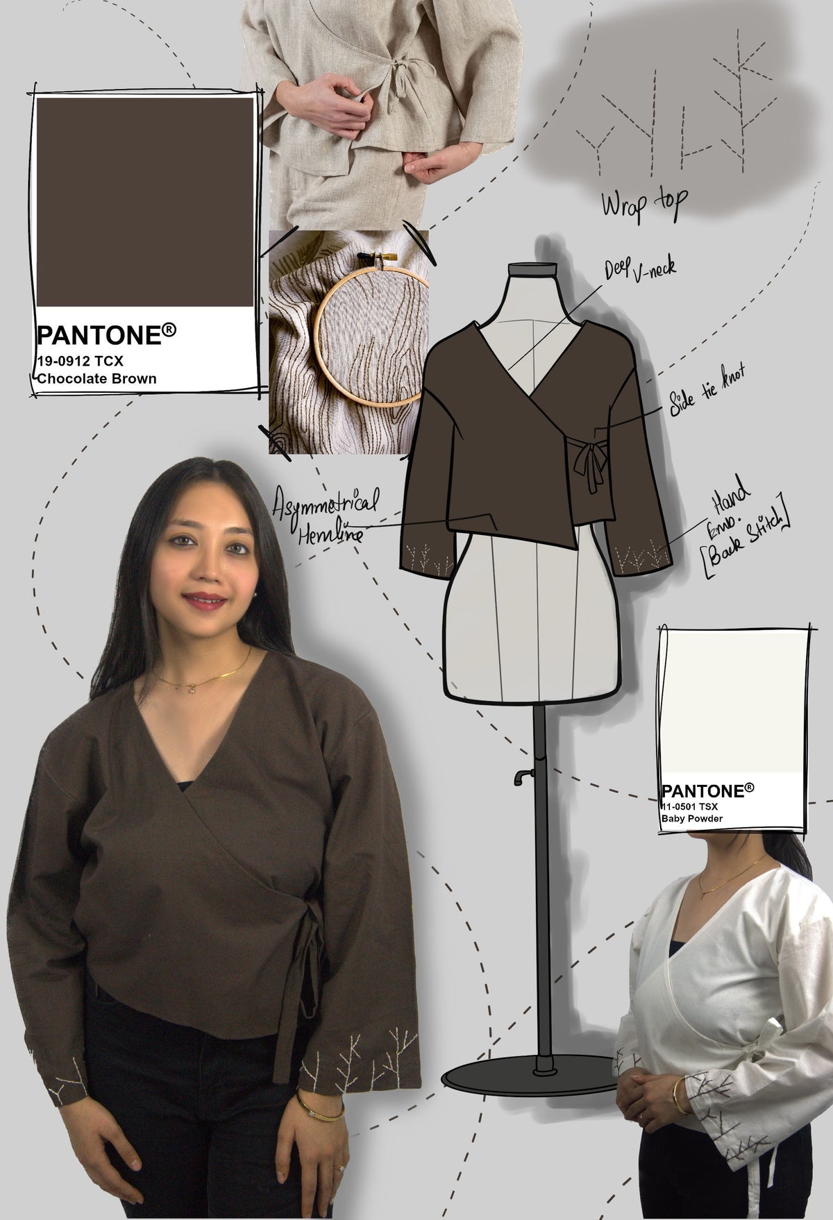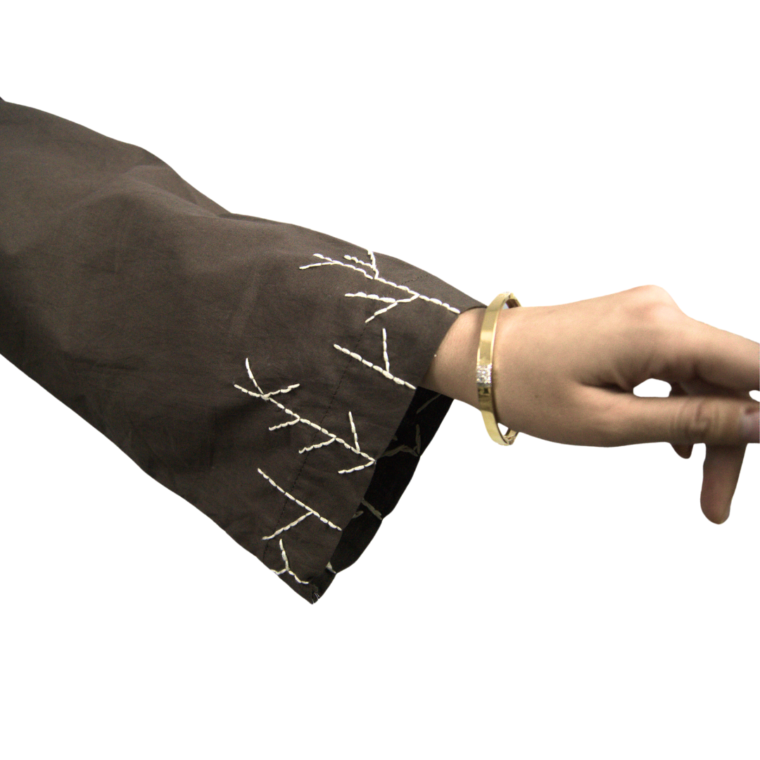 Delicate white embroidery on the sleeves for an artisanal, handcrafted feel.
